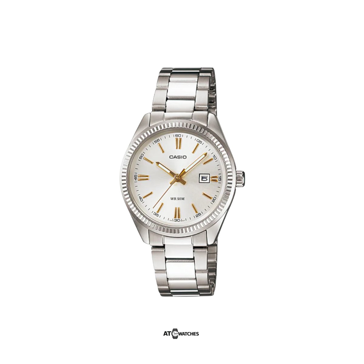 Diseño elegante y versátil con brazalete de acero, ideal para uso diario y ocasiones formales. Su resistencia al agua de 50 metros y su construcción robusta lo convierten en una opción confiable sin perder estética refinada.